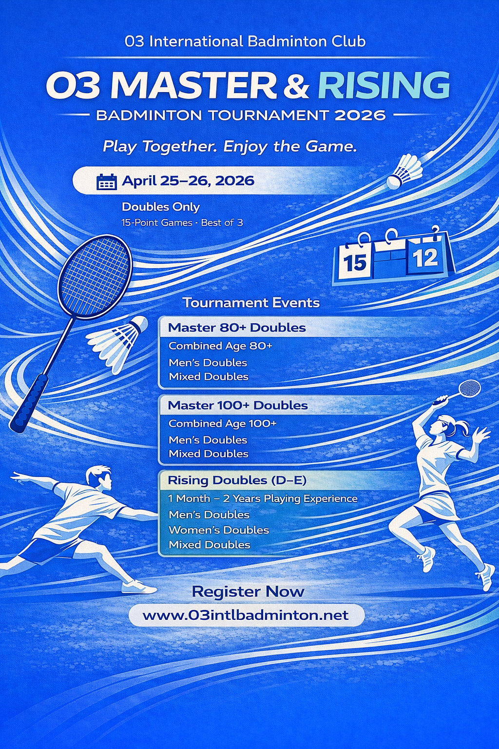 If fewer than 4 teams register in any event category, the organizer may combine the event with another category to ensure a better playing experience for all participants.